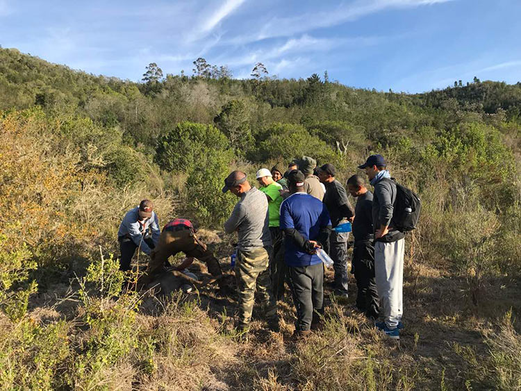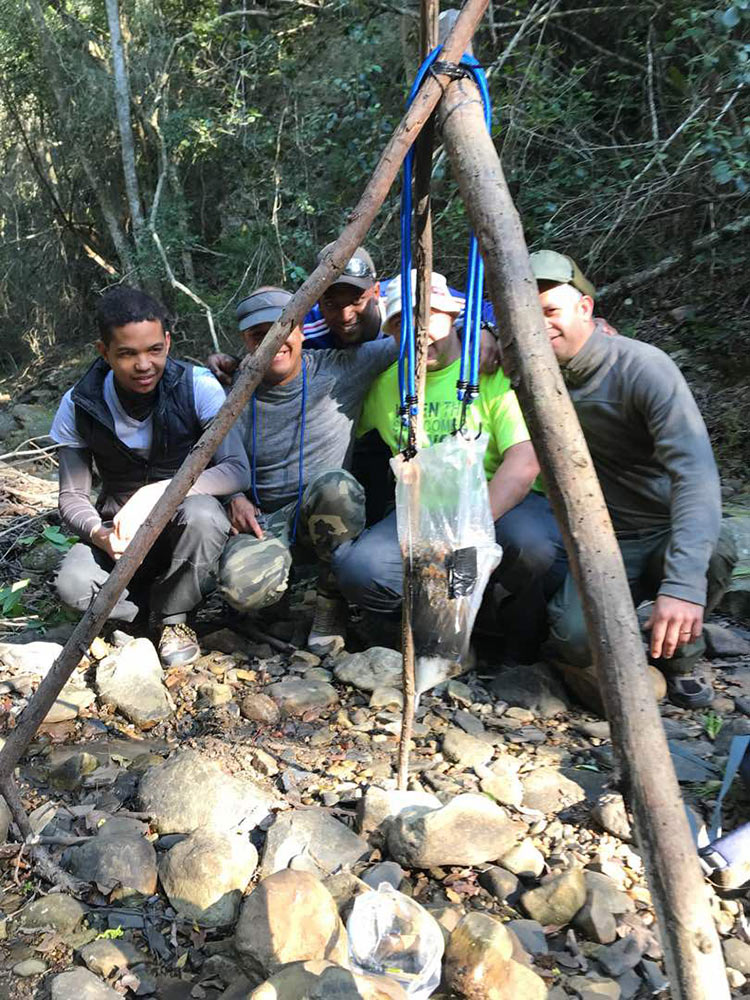 We kicked off the Winter Survival Training season in 2018 with a three-day (two night) course held in the Plettenberg Bay Area. The course was designed and run as a 40th birthday surprise for a lucky Alistair and his mates from Cape Town and Port Elizabeth. All arrangements were made by Natascha, a very competent and apparently much respected (read ‘feared’) wife to Alistair.