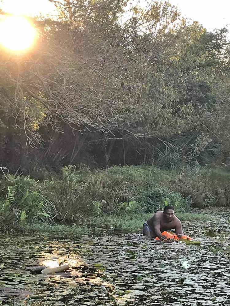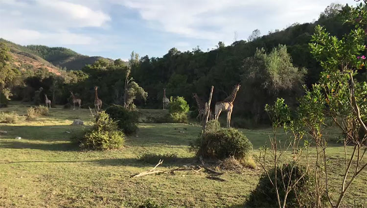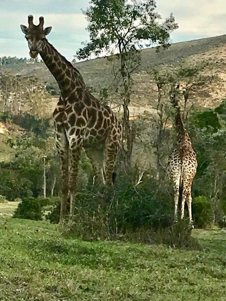 Needless to say, and largely due to Natascha’s efficiency, all of our hardy men turned up bang on time at the venue, Giraffe’s View, a stunning game park run by hosts Vicky and Neil Megersee (google them) in an area natural beauty populated with a wide range of wild animals including, you guessed it, giraffe… The reserve is big enough that survivors get a sense of isolation during the 30-minute hike from the reception area to our training area, nestled in a small valley of indigenous forest.
